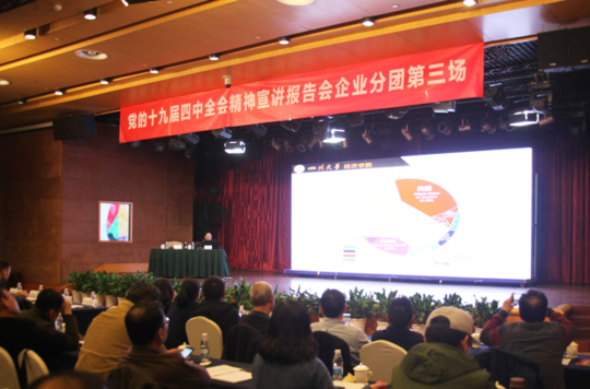 11月29日下午,省委宣講團(tuán)企業(yè)分團(tuán)黨的十九屆四中全會精神宣講第三場報告會走進(jìn)川投國網(wǎng)公司會議室。1家中央在川企業(yè)和8家省屬國有企業(yè)共計220人共聚一堂,認(rèn)真聆聽省委宣講團(tuán)成員、四川大學(xué)經(jīng)濟(jì)學(xué)院教授蔣和勝作宣講報告。