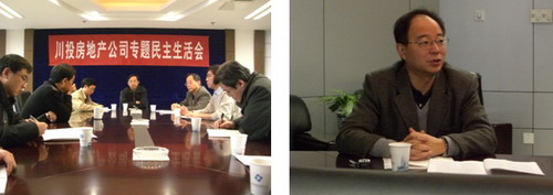 首先,王建總經(jīng)理向到會指導的各位領(lǐng)導匯報了公司前期開展學習實踐科學發(fā)展觀活動情況:一是認識到位、學習到位。公司領(lǐng)導、全體員工都參加了第一階段的動員、學習,充分認識了開展學習實踐活動的重大意義,并對學習內(nèi)容、時間進行了詳細安排,保證參學人員準確把握科學發(fā)展觀的重大意義、科學內(nèi)涵、精神實質(zhì)和根本要求。二是學用結(jié)合出成果。受金融危機及“5.12汶川大地震”影響,成都房地產(chǎn)市場持續(xù)走低,“錦江國際”、“川投調(diào)度中心”兩個項目租售難度增大,房地產(chǎn)公司迎難而上,變壓力為動力,努力做到在科學發(fā)展觀的指引下開拓、創(chuàng)新經(jīng)營思路,確保企業(yè)的活力與效率。今年11月18日,“錦江國際”項目以全市第二高分(90.3分)通過成都市標準化工地驗收,并于11月30日順利通過了省標準化工地驗收,這是“錦江國際”項目在國家建設(shè)部檢查中表現(xiàn)優(yōu)異后的又一重大成績。同時,加快土地儲備、經(jīng)營好在建項目是今后房地產(chǎn)公司持續(xù)穩(wěn)健發(fā)展的關(guān)鍵,目前我們正在洽談和跟進的有新津1000多畝的一級土地市場整治項目、雙流200多畝的“樂齡居”開發(fā)項目和天府大道南沿線1500畝的“新世紀公園”土地整治項目。三是廣泛調(diào)研,充分準備。深入項目調(diào)研,廣泛收集職工群眾的意見,將意見進行系統(tǒng)的全面分析、梳理和歸類,并圍繞“黨員干部受教育、科學發(fā)展上水平、人民群眾得實惠”總體要求和集團“兩個打造”實踐主題,開誠布公地對領(lǐng)導班子成員的分析檢查報告提意見、談看法,為召開高質(zhì)量的專題民主生活會做好了充分準備。