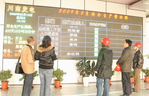 川南發(fā)電公司在辦公樓大廳的電子顯示屏上開設(shè)“安全生產(chǎn)警示牌”,實時公示公司和各部門的安全生產(chǎn)情況。除對安全生產(chǎn)情況良好的部門給予綠牌鼓勵外,還公示發(fā)生了不安全情況的部門及其負(fù)責(zé)人姓名,根據(jù)不安全情況的種類給予黃牌、橙牌、紅牌警告,將各部門的安全生產(chǎn)情況公之于眾,即鞭策不足,又使其他部門聞警知戒,促進安全生產(chǎn)工作。(姜波)
