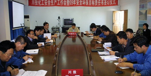 為實現(xiàn)安全管理的“可控、在控、能控”,近日,川投化工安委會召開了2009年度安全生產(chǎn)工作安排會暨安全生產(chǎn)、環(huán)保工作目標管理責任書簽字儀式。公司總經(jīng)理李曉列、副經(jīng)理王清海、張建強,總經(jīng)理助理董德明、安委會成員及各部(室)廠負責人共計20余人參加會議。會議由副總經(jīng)理王少甫主持。