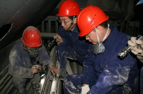 2月24日9時(shí)零5分,川南發(fā)電公司#1爐尾部煙道下方省煤器發(fā)生意外爆管,致#1機(jī)組停運(yùn)。在得悉情況后,公司總經(jīng)理李勝章立即趕到現(xiàn)場,與生技部、發(fā)電部、設(shè)備維修部的同志一道分析情況,研究對策并部署相關(guān)部門迅速配備精兵強(qiáng)將搶修#1機(jī)組。同時(shí),要求公司各部門全力以赴,密切配合,保安全、保質(zhì)量、保工期,確保#1機(jī)組在最短的時(shí)間內(nèi)完成搶修恢復(fù)發(fā)電。經(jīng)過仔細(xì)的檢查,發(fā)現(xiàn)在尾部煙道下方省煤器處有一根爐高壓管泄漏,另有3根高壓管受損,壁厚減薄。針對檢查出的情況,公司制定了詳細(xì)、周密的搶修計(jì)劃和處理措施。為了能盡快修復(fù)設(shè)備,公司各專業(yè)技術(shù)人員24小時(shí)輪班作業(yè),克服重重困難,在3天2夜的搶修中,完成了4根爐高壓管的更換,對21處高壓管進(jìn)行補(bǔ)焊和加裝45塊防磨瓦塊,并對省煤器管道進(jìn)行了全面檢查,終于安全、優(yōu)質(zhì)、高效的完成了搶修工作。26日23:27分,#1機(jī)組正式報(bào)備用,27日凌晨04:30,#1機(jī)組按調(diào)度命令點(diǎn)火、啟動,8:30并網(wǎng)成功。