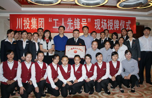 2010年8月26日下午3點,川投國際網(wǎng)球中心房務(wù)部主樓6樓熱鬧非凡,不時響起陣陣掌聲。在這里,正在進行 “川投集團工人先鋒號”現(xiàn)場授牌儀式,川投集團黨委副書記董建良、工會主席吳天鳳、總經(jīng)濟師李文志、黨群部副主任王軍參加了此次授牌儀式,集團黨委副書記董建良親自為獲得“川投集團工人先鋒號”的川網(wǎng)公司房務(wù)部進行了授牌并給予鼓勵。
