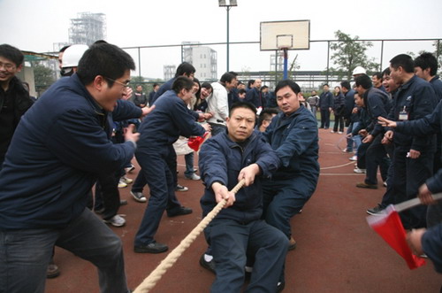 下午14:00,拔河比賽準(zhǔn)時(shí)開(kāi)始。當(dāng)兩個(gè)拔河參賽隊(duì)力量長(zhǎng)時(shí)間相持不下時(shí),周圍的員工為雙方加油的喊聲一浪高過(guò)一浪。每個(gè)隊(duì)每名隊(duì)員誰(shuí)也不甘示落,每一輪比賽都競(jìng)爭(zhēng)激烈,充滿了生氣,整齊劃一的加油鼓勁聲激蕩著在場(chǎng)的每一個(gè)人的心。