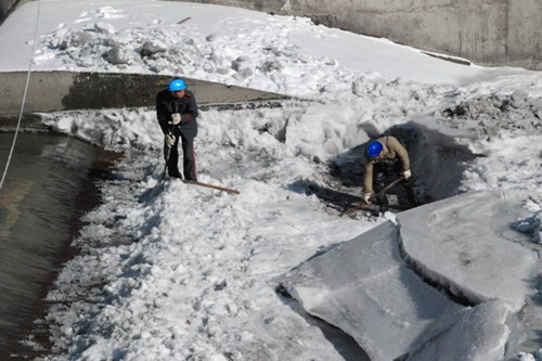 面對(duì)冰雪自然災(zāi)害帶來(lái)的嚴(yán)重影響,田灣河公司積極采取各種措施確保安全發(fā)電。公司領(lǐng)導(dǎo)帶頭戰(zhàn)斗在最前沿,現(xiàn)場(chǎng)帶班組織指揮抗災(zāi)保電;電廠和工程管理與維護(hù)部組織人員清除底格欄柵的凍冰,并駐守部分人員在“引田入環(huán)”首部,確保底格欄柵正常引水;運(yùn)行人員加強(qiáng)現(xiàn)場(chǎng)巡回檢查;檢修人員不分晝夜,及時(shí)消除設(shè)備缺陷和隱患,加強(qiáng)設(shè)備維護(hù)保養(yǎng),為設(shè)備可靠運(yùn)行提供保障;后期服務(wù)人員把熱菜熱飯送到各駐守點(diǎn);現(xiàn)場(chǎng)保衛(wèi)人員不畏嚴(yán)寒,加強(qiáng)巡查,和運(yùn)行人員一起保護(hù)設(shè)備安全……。