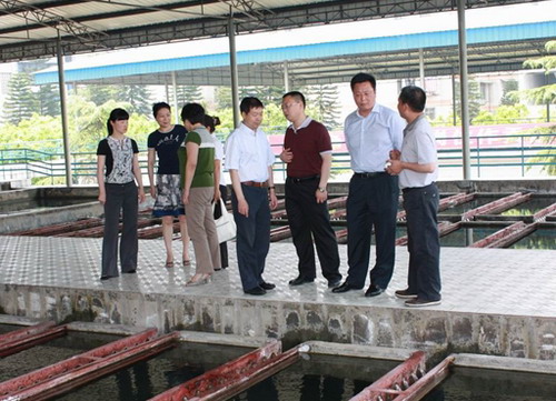 中午1時,李總一行首先來到射洪自來水公司,察看自來水生產(chǎn)工藝和水質(zhì)檢測中心的運行情況,并與在崗員工一一握手,親切交談。李總詳細詢問了射洪自來水公司為迎接2012年新水質(zhì)檢測標準而開展設備和技術人員的籌備情況,強調(diào)夏季是用水高峰期,要千方百計確保安全平穩(wěn)供水,并祝他們節(jié)日快樂、身體健康!隨后,李總一行又頂著35度高溫察看了取水口遷建工程的管道安裝和取水口施工現(xiàn)場,李總詳細詢問了工程進展情況,要求全力確保工程質(zhì)量、工期和安全,為川投水務和射洪縣經(jīng)濟的發(fā)展做出積極貢獻。