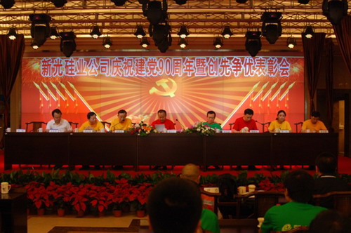 紅色六月,熱情似火。在七一來臨之際,新光硅業(yè)公司黨委于2011年6月28日隆重召開了“慶祝建黨九十周年暨創(chuàng)先爭優(yōu)表彰大會”。公司領(lǐng)導班子成員、專家、全體黨員、預備黨員和入黨積極分子近180人參加了會議。