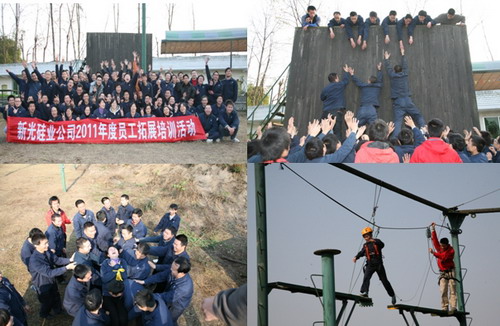 2011年12月12日至16日期間,新光硅業(yè)公司組織全員拓展培訓。本次培訓項目包括“團隊建設”、“信任背摔”、“七星劍陣”、“高空斷橋”和“勇攀高峰”等多個項目。培訓分五個批次,每批次80余人次,每批次培訓時長為一天。