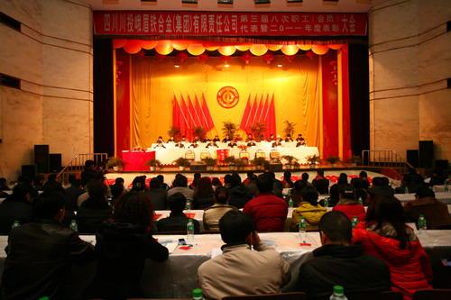 2月28日下午,川投峨鐵公司在工人文化宮隆重召開了第三屆八次職工代表、工會會員代表暨2011年度表彰大會。來自企業(yè)各條戰(zhàn)線上的170名正式代表以及列席代表、特邀代表共計549人出席了此次大會。會議由公司副總經(jīng)理余華偉主持。