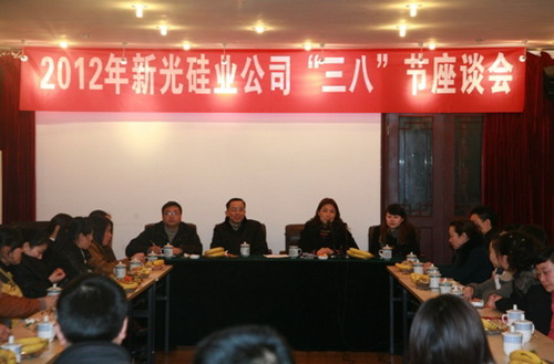 2012年3月8日,新光硅業(yè)公司慶祝“三八節(jié)”座談會(huì)在樂山金鷹山莊舉行,會(huì)議由公司紀(jì)委書記、工會(huì)主席余嘉樂同志主持。會(huì)上,余書記首先代表公司黨委和公司總經(jīng)理陳長(zhǎng)江向長(zhǎng)期堅(jiān)持在崗位上積極工作、銳意進(jìn)取,為公司發(fā)展做出貢獻(xiàn),的女職工表示崇高的敬意與節(jié)日的祝福。隨后,董事會(huì)秘書、公司總經(jīng)濟(jì)師李紅同志宣讀了2011年度公司先進(jìn)女工的表彰決定及表彰人員名單,并向受到表彰的女職工頒發(fā)榮譽(yù)證書。
