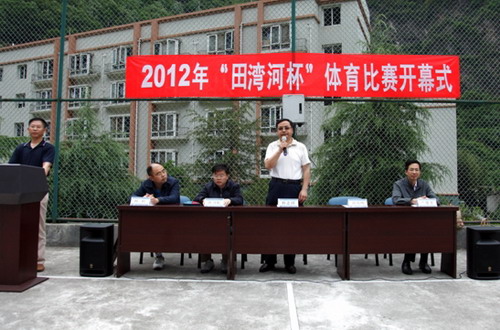 5月22日上午,“2012年‘田灣河杯’體育比賽開幕式”的大幅會(huì)標(biāo)懸掛在草科營地籃球場正中央,印有川投集團(tuán)徽記的彩旗飄揚(yáng)在球場四周。公司黨委書記、總經(jīng)理孫志祥,黨委副書記、工會(huì)主席劉鳳鳴,總工程師唐劍虹,副總經(jīng)理、電廠廠長盧建奎,副總會(huì)計(jì)師楊利出席了當(dāng)天的開幕式,開幕式由劉鳳鳴主持。在雄壯的運(yùn)動(dòng)員進(jìn)行曲中,參加本次比賽的六支賽隊(duì)在導(dǎo)引員的引導(dǎo)下闊步進(jìn)入會(huì)場。