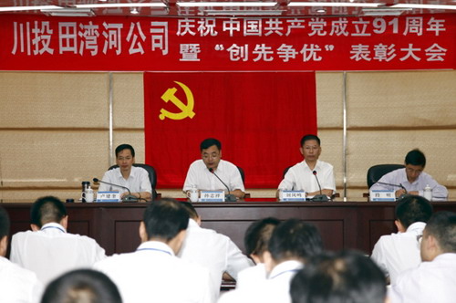7月1日,田灣河公司在電站現(xiàn)場(chǎng)208會(huì)議召開慶祝中國(guó)共產(chǎn)黨成立91周年暨“創(chuàng)先爭(zhēng)優(yōu)”表彰大會(huì),公司黨委書記、總經(jīng)理孫志祥,黨委副書記、紀(jì)委書記劉鳳鳴,紀(jì)委委員、副總經(jīng)理、電廠廠長(zhǎng)盧建奎,黨委委員、總經(jīng)理助理、行政管理部主任段明及公司全體黨員、入黨積極分子、群眾代表參加了會(huì)議。會(huì)議由劉鳳鳴主持。