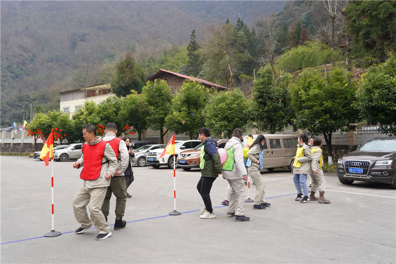 趣味活動(dòng)極具田灣河特色,參賽隊(duì)員被分為“大發(fā)”隊(duì)、“金窩”隊(duì)、“仁宗?!标?duì)、“水電+旅游”隊(duì)4只隊(duì)伍相互競賽。在“團(tuán)結(jié)協(xié)作、奮勇拼搏”項(xiàng)目中,隊(duì)員們排成一列,通過協(xié)調(diào)配合騎行可愛的熊貓道具,大家步調(diào)一致向前沖,你追我趕,歡笑一片;在“精準(zhǔn)發(fā)力、再創(chuàng)佳績”項(xiàng)目中,每位隊(duì)員用手中套圈,拋向一個(gè)個(gè)預(yù)定目標(biāo),收獲滿意的分?jǐn)?shù);在“心心相印、砥礪前行”項(xiàng)目中,每組隊(duì)員背靠背,默契配合,用巧勁夾住氣球,展開接力;最后的“喜迎黨的二十大,共同描繪新藍(lán)圖”項(xiàng)目,大家手持畫筆,全情投入,用絢麗的色彩共同描繪出田灣河人心中迎接黨的二十大勝利召開的喜悅心情、對偉大祖國的美好祝愿以及對公司未來蓬勃發(fā)展的堅(jiān)定信心。一個(gè)接一個(gè)的項(xiàng)目緊張而歡快的進(jìn)行著,現(xiàn)場氣氛格外熱烈,活力十足,歡聲笑語此起彼伏?;顒?dòng)最后,公司領(lǐng)導(dǎo)分別為一、二、三等獎(jiǎng)的隊(duì)伍頒發(fā)獎(jiǎng)品。