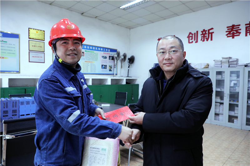 26日下午,黨委副書(shū)記、總經(jīng)理范勤英來(lái)到“楊衛(wèi)星”技能大師創(chuàng)新工作室,把組織的關(guān)愛(ài)送到嘉陽(yáng)煤礦職工楊衛(wèi)星的手中。楊衛(wèi)星是技能大師,也是川投工匠,現(xiàn)為智能化綜采隊(duì)包機(jī)組組長(zhǎng)。在創(chuàng)新工作室,總經(jīng)理范勤英與楊衛(wèi)星親切交談,關(guān)心了解他的工作生活情況,希望他繼續(xù)發(fā)揚(yáng)工匠精神,進(jìn)一步強(qiáng)化創(chuàng)新意識(shí),帶好班組,為智能化綜采服好務(wù),為企業(yè)智能化、智慧化建設(shè)多作貢獻(xiàn)。在新春來(lái)臨之際,祝他及家人春節(jié)快樂(lè),平安幸福。