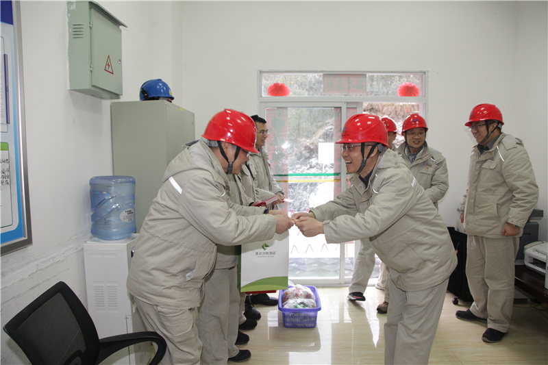 2月1日,現(xiàn)場(chǎng)值班領(lǐng)導(dǎo)、黨委委員、財(cái)務(wù)總監(jiān)毛建,副總工程師王勇一行對(duì)春節(jié)期間堅(jiān)守電站現(xiàn)場(chǎng)的值班員工進(jìn)行了集中慰問(wèn)。迎著貢嘎山的第一縷晨曦,毛建一行向值守在仁宗海、金窩和大發(fā)廠(chǎng)房的員工送去了公司的問(wèn)候,以及精心準(zhǔn)備的新年禮包。慰問(wèn)過(guò)程中,毛建還與值守員工詳細(xì)交流了春節(jié)值班期間工作、生活上的情況。