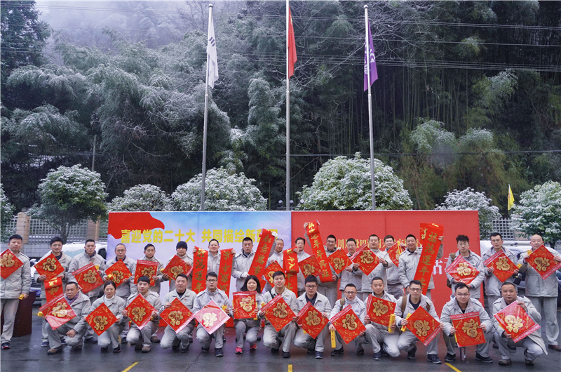 1月29日公司黨委副書(shū)記、總經(jīng)理?xiàng)畛?,副總?jīng)理伍超代表公司黨委,在草科營(yíng)地開(kāi)展了“迎春送福”活動(dòng)。為春節(jié)期間堅(jiān)守在生產(chǎn)一線(xiàn)的全體員工送去“?!弊帧⒋郝?lián),并送上公司黨委的新春?jiǎn)柡蚝妥8?,?duì)大家春節(jié)闔家團(tuán)圓期間不畏嚴(yán)寒、堅(jiān)守崗位,以高昂的工作熱情和認(rèn)真負(fù)責(zé)的主人翁精神為公司春節(jié)期間安全生產(chǎn)保駕護(hù)航表示衷心感謝。