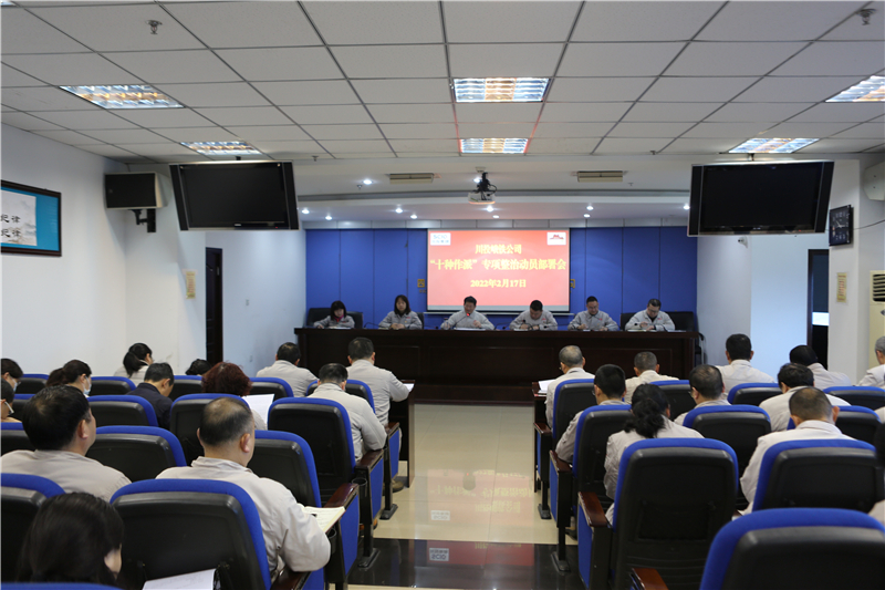 2月17日,川投峨鐵公司召開(kāi)“十種作派”專(zhuān)項(xiàng)整治動(dòng)員部署會(huì),川投峨鐵公司黨委書(shū)記、董事長(zhǎng)唐華應(yīng)出席會(huì)議并講話,黨委委員、公司紀(jì)委書(shū)記丁憲主持會(huì)議。
