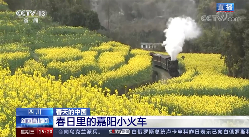 3月2日下午3時,中央電視臺新聞頻道新聞直播間“春天的中國”特別直播節(jié)目正式播出。隨著金黃色的油菜花在現(xiàn)場連線鏡頭中的驚艷亮相,全中國的目光再一次聚焦“春日里的嘉陽小火車”。