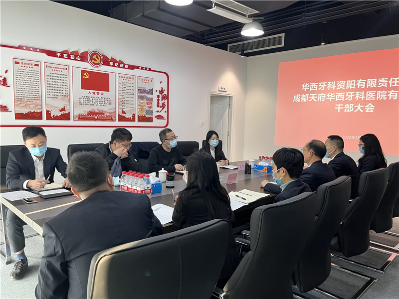 3月11日下午,華西牙科資陽公司、天府華西牙科公司召開干部大會。華西牙科黨委書記、董事長劉凌云,副總經理李景雨出席會議并講話。