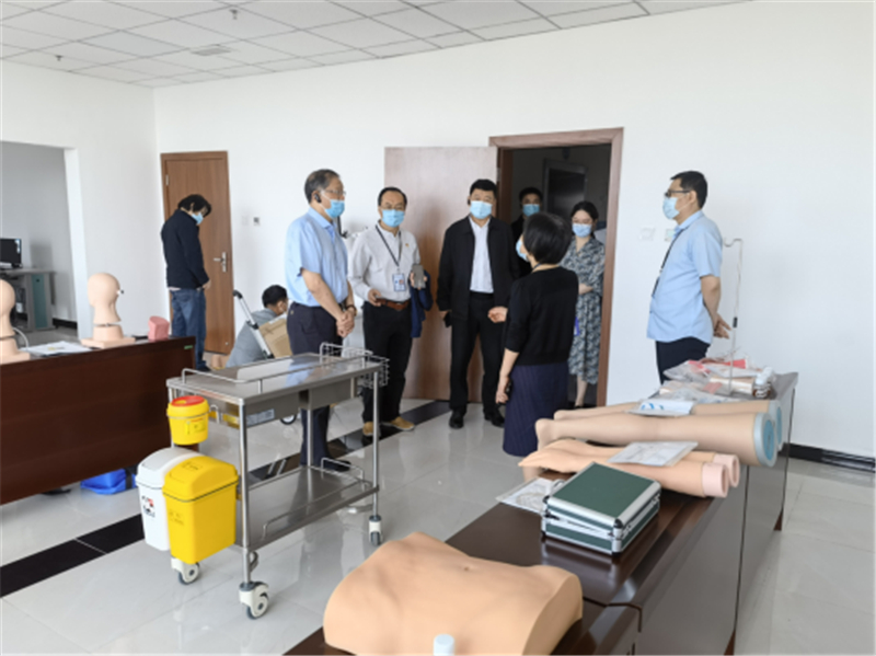 張中偉一行在醫(yī)院黨委書記徐知非的陪同下,參觀考察了新院區(qū)的名中醫(yī)館、康復(fù)治療中心、口腔治療中心和實踐教學(xué)中心等地。
