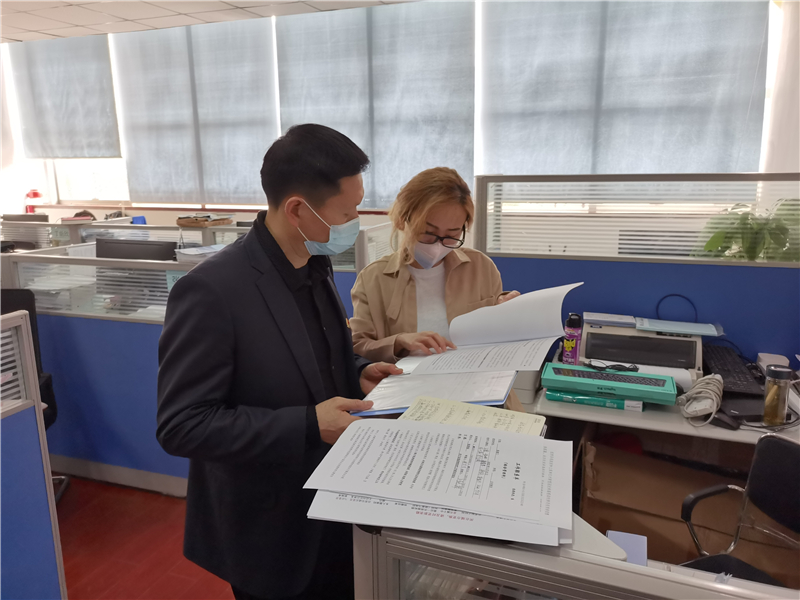 冉蘭平一行首先檢查了兩家所屬企業(yè)的入口、辦公區(qū)域、公共區(qū)域等關(guān)鍵點位的防控工作,然后檢查了疫情防控工作臺賬、人員健康報告與出行登記臺賬、疫苗接種臺賬、防疫物資出入庫臺賬、宣傳教育及信息報送情況,查閱了公司疫情防控應(yīng)急預(yù)案、工作方案、專題會紀要等,并隨機抽問員工是否了解上級單位的疫情防控相關(guān)文件和會議精神,是否貫徹落實防控要求和個人防護措施。