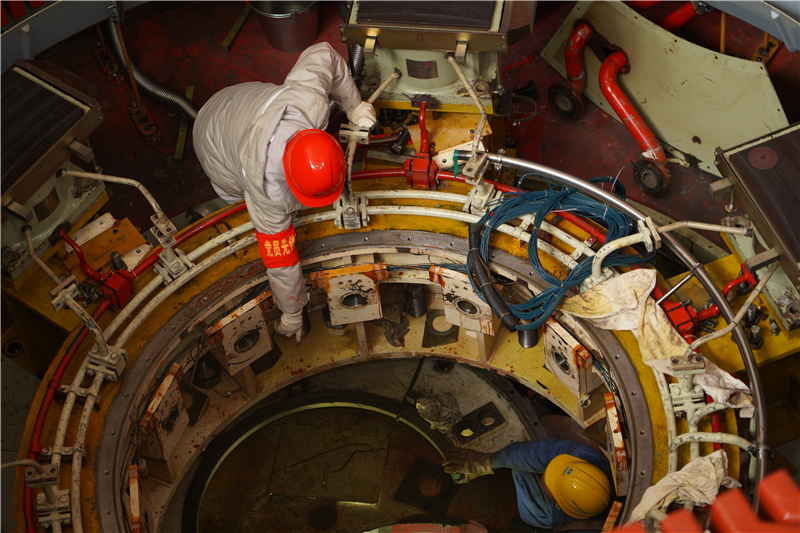 3月27日發(fā)電機(jī)推力頭一次性熱拔成功;
