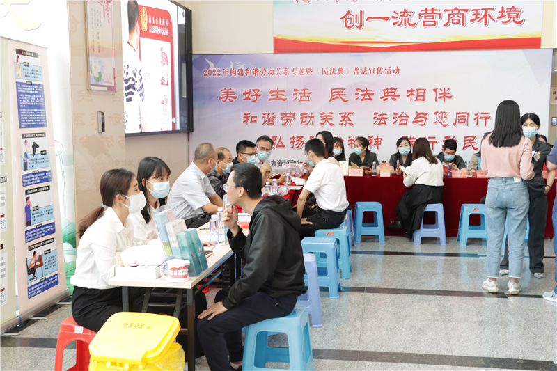 5月19日上午,由汕頭市人力資源和社會(huì)保障局、汕頭市政務(wù)服務(wù)數(shù)據(jù)管理局及汕頭市龍湖區(qū)人民法院聯(lián)合主辦,汕頭口腔醫(yī)院黨支部、汕頭市勞動(dòng)人事爭(zhēng)議調(diào)解仲裁院及廣東國(guó)源嶺東律師事務(wù)所協(xié)辦的“2022年構(gòu)建和諧勞動(dòng)關(guān)系專題暨《民法典》普法宣傳活動(dòng)”在汕頭市政務(wù)服務(wù)中心舉辦,汕頭口腔醫(yī)院黨支部帶隊(duì)到場(chǎng)開展口腔義診活動(dòng)。