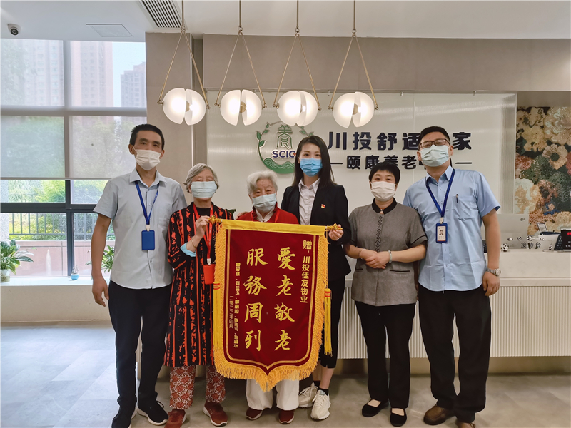 2022年5月20日,川投舒適之家?頤康養(yǎng)老中心四位長者代表給川投佳友物業(yè)頤康養(yǎng)老物業(yè)服務中心送來了寫有“愛老敬老,服務周到”的錦旗。一面錦旗,一句感謝是對物業(yè)人的鼓舞,是養(yǎng)老院長者對物業(yè)工作的肯定,更是與業(yè)主深厚情誼的見證。