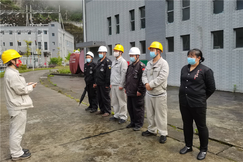 本次演練共分為三個(gè)階段進(jìn)行。第一,風(fēng)險(xiǎn)預(yù)判,提前預(yù)警。金窩電站值長根據(jù)水情人員所報(bào)天氣預(yù)報(bào),結(jié)合現(xiàn)場降雨情況,提前通知站內(nèi)值班人員、保安人員及廚師,降雨期間貓貓石崩塌點(diǎn)易發(fā)生泥石流等自然災(zāi)害,并要求時(shí)刻做好撤離準(zhǔn)備,同時(shí)加強(qiáng)對(duì)貓貓石易發(fā)災(zāi)點(diǎn)遠(yuǎn)程監(jiān)控力度。第二,快速撤離,保障全員人身安全。當(dāng)監(jiān)控發(fā)現(xiàn)有小規(guī)模泥石流,運(yùn)行人員分工合作,值班員迅速向值長匯報(bào),值長組織全員向泥石流推進(jìn)方向兩側(cè)疏散、撤離至應(yīng)急避險(xiǎn)點(diǎn),確保站內(nèi)人員人身安全,并及時(shí)向部門及公司應(yīng)急指揮辦公室匯報(bào)現(xiàn)場情況。第三,分析災(zāi)情,保護(hù)設(shè)備降低損失。當(dāng)泥石流危及設(shè)備安全時(shí),在確保人員人身安全前提下,通知遠(yuǎn)控調(diào)整負(fù)荷和機(jī)組狀態(tài),現(xiàn)場指揮人員做好設(shè)備緊急處置,將損失降到最低。
