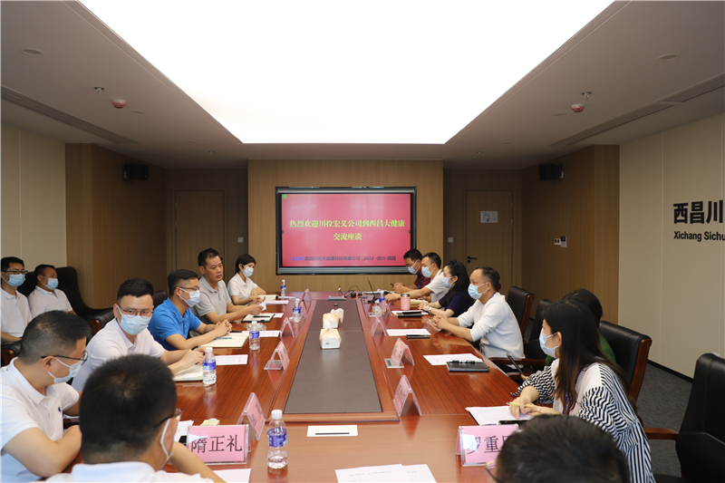 2022年5月31日,川投宏義公司總經(jīng)理姜驍一行到西昌大健康公司進(jìn)行座談交流,公司黨總支書(shū)記龔堅(jiān),黨總支委員、副總經(jīng)理李剛、蒲軍,財(cái)務(wù)總監(jiān)朱彥及相關(guān)部門(mén)人員參加此次座談。