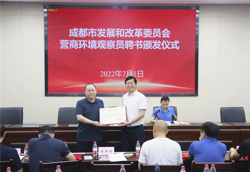 7月1日,成都市發(fā)展和改革委員會(huì)舉行營(yíng)商環(huán)境觀察員聘書頒發(fā)儀式。川投信息產(chǎn)業(yè)集團(tuán)所屬川投云鏈科技有限公司總經(jīng)理封飛,被正式聘任為成都市發(fā)改委2022年度營(yíng)商環(huán)境觀察員。