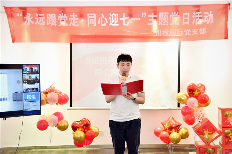 為慶祝中國共產黨成立101周年,切實增強全體黨員榮譽感責任感使命感,6月27日,川投國際黨支部通過線上線下視頻連線的方式,組織開展“永遠跟黨走?同心迎七一”朗誦比賽,與身處異地的境外黨員同志一同為祖國母親生日獻禮喝彩。