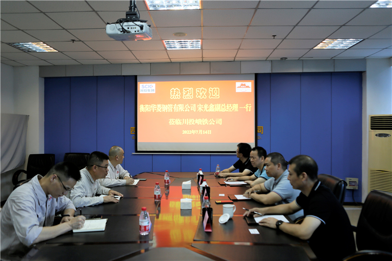 7月14日,衡陽華菱鋼管有限公司宋光鑫副總經(jīng)理等一行4人到訪川投峨鐵公司洽談業(yè)務(wù),川投峨鐵公司黨委副書記、總經(jīng)理陳新龍,經(jīng)營口相關(guān)業(yè)務(wù)人員等接待了來訪客人一行。