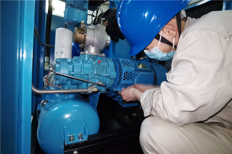 因電站廠房內(nèi)空氣濕度較大,氣機(jī)在出力時(shí)吸入的水分會(huì)加速油質(zhì)的劣化和零部件的銹蝕與老化,從而影響氣機(jī)正常出力。因此,每年公司將組織開展一次氣系統(tǒng)維護(hù)保養(yǎng),以減少零件磨損、延長空壓機(jī)使用壽命。除常規(guī)保養(yǎng)外,今年在的檢修保養(yǎng)過程中,專業(yè)技術(shù)人員針對(duì)低壓氣機(jī)油冷卻器和空氣冷卻器不易清洗的技術(shù)難題,結(jié)合歷年檢修經(jīng)驗(yàn),深度解析氣機(jī)結(jié)構(gòu)原理,合理優(yōu)化檢修工序,并利用反向氣壓,巧妙排清了冷卻器中的殘留水分和油污雜質(zhì)。此外,針對(duì)零部件銹蝕產(chǎn)生銹渣加速設(shè)備磨損的問題,在此次檢修過程中也一并進(jìn)行了針對(duì)性的處理變換。每臺(tái)氣機(jī)經(jīng)過精心維護(hù)后,檢修人員對(duì)中、低壓機(jī)分別進(jìn)行了手、自動(dòng)動(dòng)作實(shí)驗(yàn),氣機(jī)各項(xiàng)工況良好,標(biāo)志著本輪氣機(jī)保養(yǎng)工作正式結(jié)束。