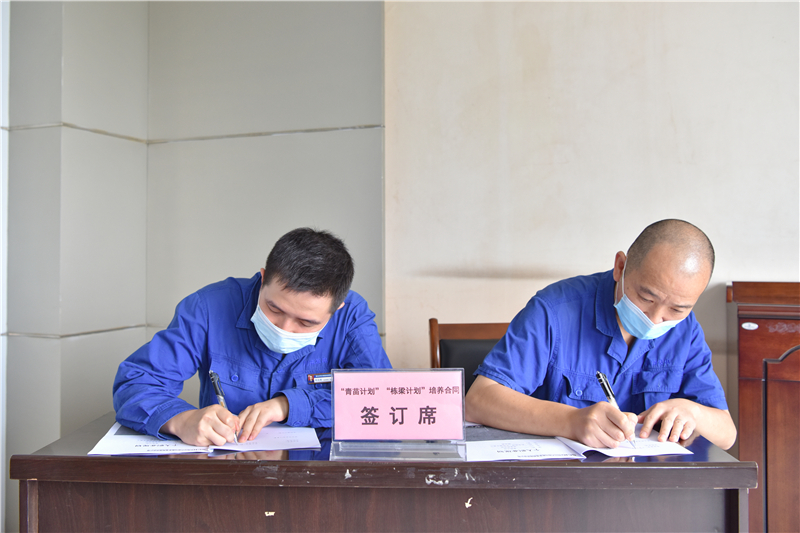 會上,黃松公布了第一批“青苗計劃”“棟梁計劃”成員及導師名單,并介紹了公司“青苗計劃”“棟梁計劃”基本情況及階段性實施情況。首批計劃共結成師生24對?!扒嗝缬媱潯薄皸澚河媱潯背蓡T及導師代表分別作了發(fā)言并一對一簽訂了培養(yǎng)合同。劉勝金、陳嵩分別作了講話。
