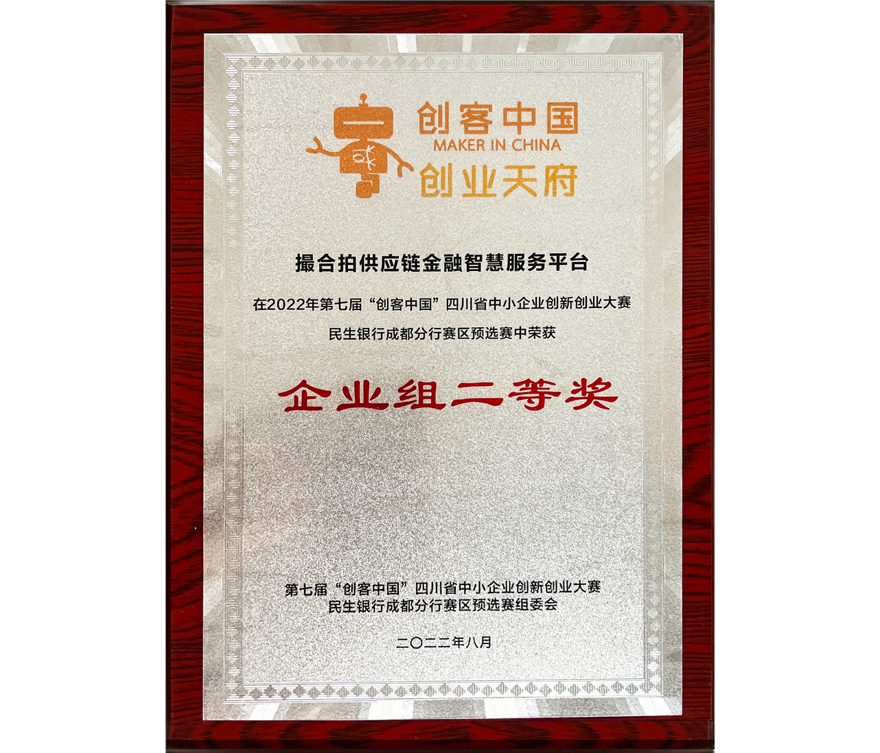 近日,由四川省經(jīng)濟和信息化廳、四川省財政廳指導(dǎo),民生銀行成都分行主辦的第七屆“創(chuàng)客中國·創(chuàng)業(yè)天府”四川省中小企業(yè)創(chuàng)新創(chuàng)業(yè)大賽“民生銀行成都分行賽區(qū)”預(yù)選賽在成都舉行。川投信產(chǎn)所屬四川川投云鏈科技有限公司參賽,參賽項目“撮合拍供應(yīng)鏈金融智慧服務(wù)平臺”從企業(yè)組13個項目中脫穎而出,榮獲企業(yè)組二等獎,成功晉級選拔賽。
