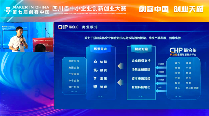 在項目展示中,川投云鏈領(lǐng)隊介紹到:在數(shù)字化發(fā)展的背景下,川投信產(chǎn)所屬川投云鏈通過區(qū)塊鏈、大數(shù)據(jù)、云計算等數(shù)字技術(shù)的創(chuàng)新應(yīng)用,打造“撮合拍供應(yīng)鏈金融智慧服務(wù)平臺”,不斷聚合眾多銀行、小貸等生態(tài)伙伴推動供應(yīng)鏈金融產(chǎn)品創(chuàng)新,助推企業(yè)信用數(shù)字化,提高普惠金融踐行效率,讓數(shù)字跑替代企業(yè)跑,打通金融機構(gòu)與企業(yè)融資最后一公里。平臺已廣泛服務(wù)于我省裝備制造、電子信息、能源化工等產(chǎn)業(yè)鏈,助力企業(yè)供應(yīng)鏈融資成效凸顯,獲得政府、客戶及業(yè)內(nèi)等多方的一致好評。