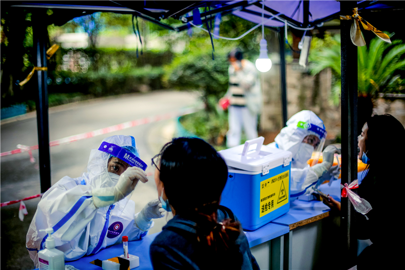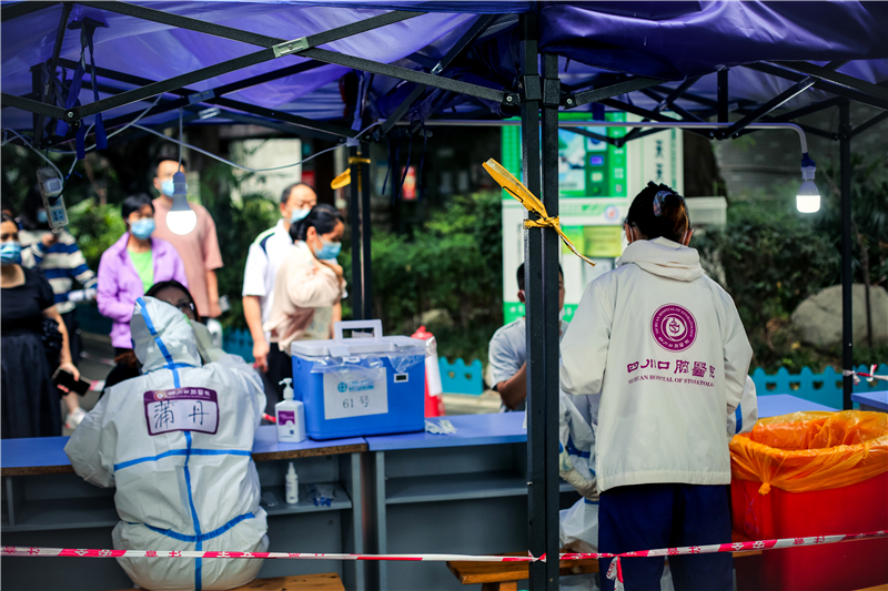 8月29日,“青羊區(qū)大規(guī)模核酸檢測作戰(zhàn)任務(wù)”的緊急通知剛剛下達(dá),2名正打算休假的黨員放棄休假、主動請戰(zhàn),全副武裝準(zhǔn)時抵達(dá)指定地點(diǎn)開展核酸檢測。從下午3點(diǎn)到晚上10點(diǎn),他們連續(xù)奮戰(zhàn)7個多小時未休息,為超過4600名小區(qū)居民完成核酸采樣。截至9月3日,該支部已出動醫(yī)護(hù)人員20余人次,圓滿完成上級安排的各次核酸采樣任務(wù)。