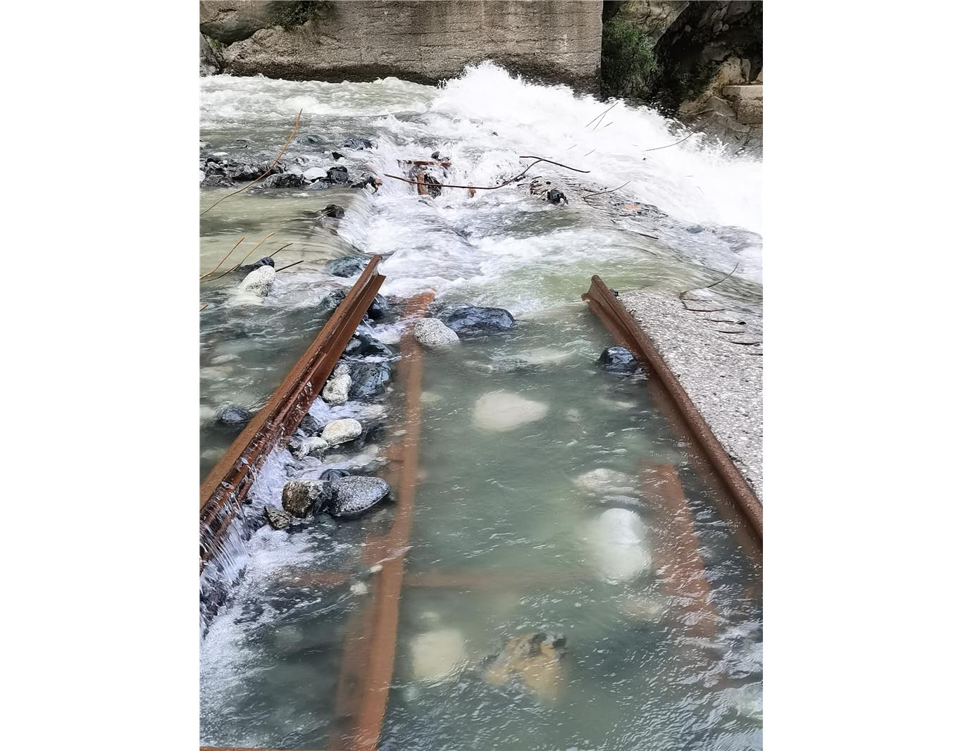 受8月28日和8月29日回龍溝上游山洪影響,9月1日,沙金車間取水樞紐突發(fā)險情,底格欄柵壩壩面三分之一的鋼結(jié)構(gòu)、部分混凝土遭受嚴重破壞,二分之一壩面嚴重淤積。險情導致沙金車間引水全部中斷,發(fā)電來水量減少三分之一,嚴重影響機組發(fā)電。