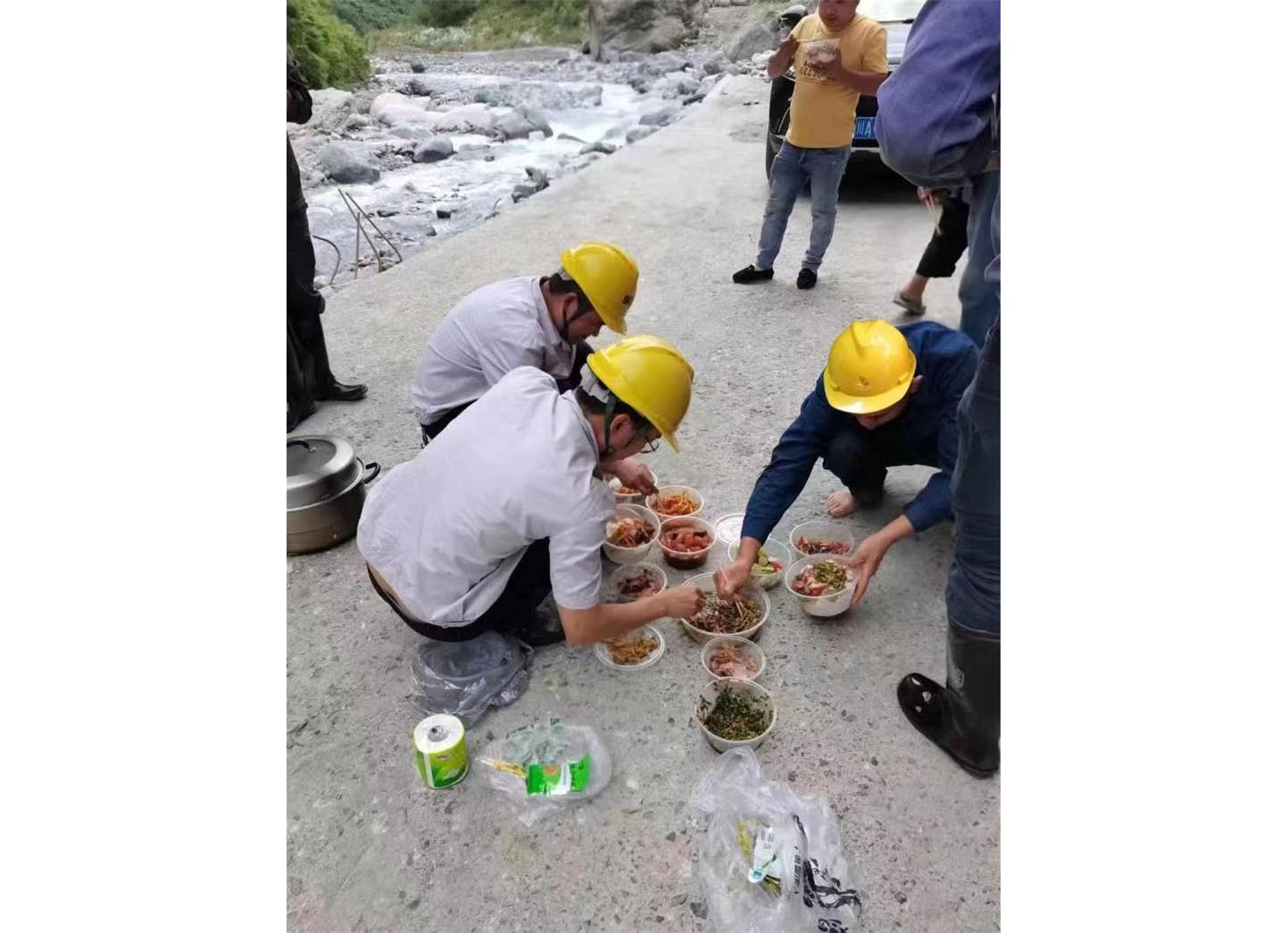 受交通管制,外來車輛禁止通行,公司第一時間同彭州市水務(wù)、交通等部門協(xié)調(diào)聯(lián)系,迅速從50公里外調(diào)配挖掘機馳援現(xiàn)場,確保搶險工作有序推進。沙金車間員工火速集結(jié),穿上筒靴、拿起鋤頭鐵鏟緊急投入搶險工作,勘查現(xiàn)場、疏通清淤、修復鋼結(jié)構(gòu)。為搶占時間,大家僅用幾分鐘輪流半蹲在河道邊解決餐食,由于時間過于倉促大家都來不及吃飽又繼續(xù)奮戰(zhàn)。后勤部門多線配合,為加大后勤保障力度,及時提供所需物資,在險情當前,刻不容緩,以實際行動在搶險第一線擔當作為。