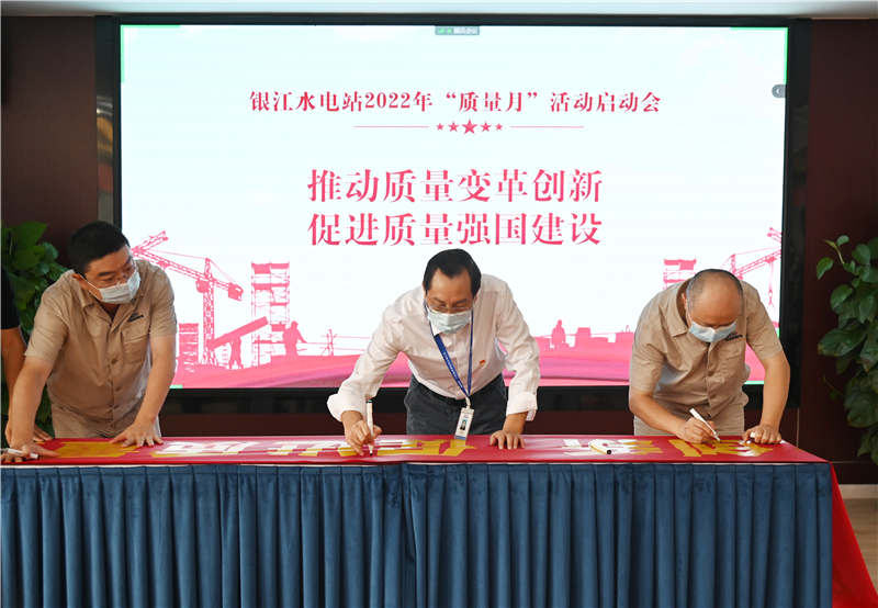 為積極響應(yīng)國(guó)家“質(zhì)量月”活動(dòng)號(hào)召,努力增強(qiáng)全員質(zhì)量責(zé)任意識(shí),9月3日,公司組織召開(kāi)銀江水電站2022年“質(zhì)量月”活動(dòng)啟動(dòng)會(huì)。川投能源副總經(jīng)理、公司黨總支書(shū)記、董事長(zhǎng)、質(zhì)委會(huì)主任徐孝剛,公司黨總支副書(shū)記、總經(jīng)理、質(zhì)委會(huì)主任吳巍嶼,公司副總經(jīng)理唐伽出席會(huì)議,公司工程管理部、長(zhǎng)江設(shè)計(jì)代表處、各監(jiān)理部、各第三方質(zhì)量檢測(cè)中心、各施工單位項(xiàng)目部領(lǐng)導(dǎo)、質(zhì)量管理人員共計(jì)20余人參加活動(dòng)。