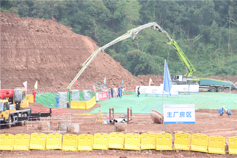 9月16日上午11點16分,伴隨著熱烈的鞭炮聲、鼓掌聲和工程車輛的鳴笛聲,資陽燃?xì)怆娬拘陆üこ添椖恐鲝S房第一罐混凝土澆筑儀式隆重舉行。隨著EPC總承包項目部負(fù)責(zé)人宣布澆筑開始,混凝土攪拌車內(nèi)的混凝土通過泵車輸送管緩緩注入主廠房基礎(chǔ)鋼筋模具內(nèi),標(biāo)志著項目建設(shè)正式啟動。
