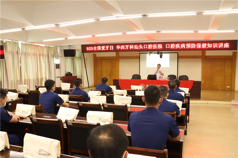 在“9?20全國愛牙日”來臨之際,9月19日下午,汕頭口腔醫(yī)院組織醫(yī)護團隊前往汕頭消防救援支隊特勤大隊,組織開展口腔疾病預防保健知識講座,為全體消防官兵普及牙科知識,用實際行動守護“最可愛的人”。