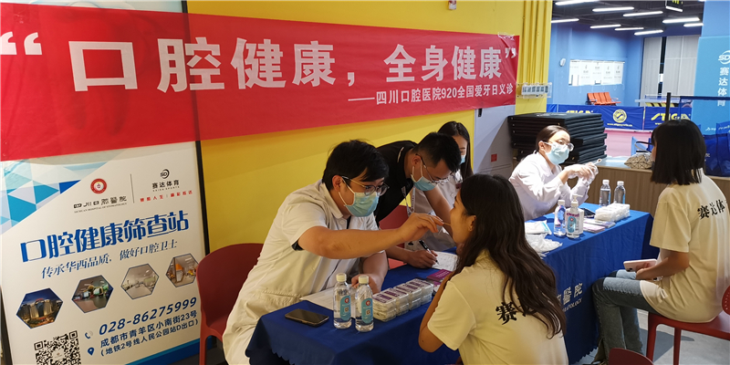 下午2點(diǎn),四川口腔醫(yī)院醫(yī)務(wù)人員前往成都賽達(dá)乒乓球俱樂部,為100余位俱樂部會(huì)員進(jìn)行免費(fèi)口腔檢查,針對(duì)體育工作者常見的口腔問題給予了科學(xué)的診療建議。成都賽達(dá)乒乓球俱樂部作為四川口腔醫(yī)院“醫(yī)體聯(lián)盟”成員單位,此次活動(dòng)是踐行醫(yī)體融合的重要體現(xiàn)。