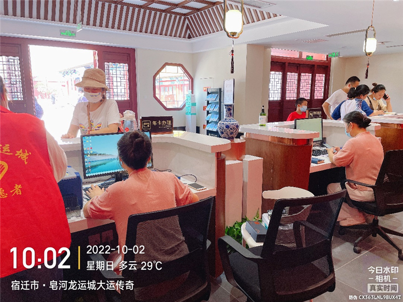 在宿遷龍運(yùn)城景區(qū)票務(wù)軟件產(chǎn)品采購項(xiàng)目,技術(shù)人員在現(xiàn)場進(jìn)行系統(tǒng)保障,確保景區(qū)國慶期間開園售票、檢票、入園流程穩(wěn)定流暢,市場推廣分銷活動與票務(wù)系統(tǒng)順利銜接。