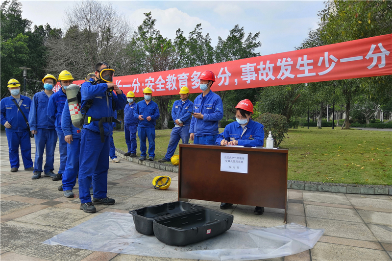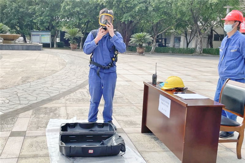 現(xiàn)場(chǎng)比賽結(jié)束后,裁判組請(qǐng)王鑫重新展示了一遍正壓式呼吸器的穿戴和使用,并進(jìn)行了全程錄像,計(jì)劃將其作為今后員工培訓(xùn)的教學(xué)視頻。
