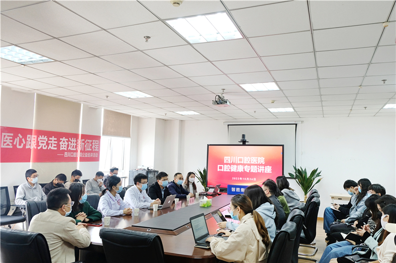為貫徹落實(shí)黨的二十大精神,推進(jìn)健康中國建設(shè),更好地保障人民健康。10月26日下午,四川口腔醫(yī)院“口腔健康,全身健康”首場公益巡講活動(dòng)在四川川大智勝系統(tǒng)集成有限公司舉行,50余名干部職工參加本次講座。