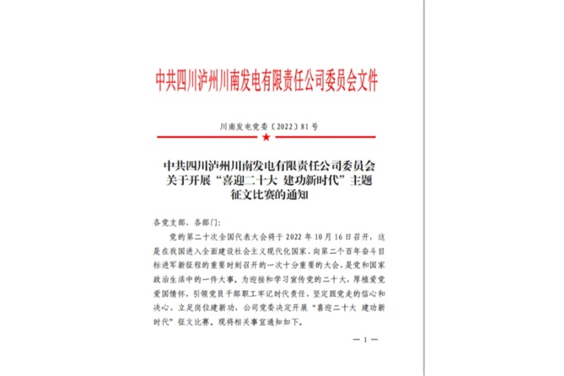 為增強廣大黨員干部職工學(xué)習(xí)貫徹黨的二十大精神的效果,大會召開前,公司印發(fā)了《關(guān)于開展“喜迎二十大 建功新時代”主題征文比賽的通知》,號召廣大黨員干部職工以黨的二十大為主題,結(jié)合自身工作實際,積極抒發(fā)自己的感想體會,講述自己學(xué)習(xí)、進步、奮斗的故事,表達對黨和祖國的深情厚愛,凝聚團結(jié)奮斗的磅礴力量。大會開幕后,黨的二十大召開期間,公司印發(fā)了《關(guān)于報送學(xué)習(xí)黨的二十大報告心得體會和感悟的通知》,號召廣大黨員干部職工認(rèn)真學(xué)習(xí)黨的二十大報告,主動思考、認(rèn)真領(lǐng)悟,結(jié)合自身日常工作撰寫學(xué)習(xí)心得體會和感悟。截至目前,公司已收到主題征文和心得體會共72篇,推出學(xué)習(xí)貫徹黨的二十大報告主題公眾號兩期。