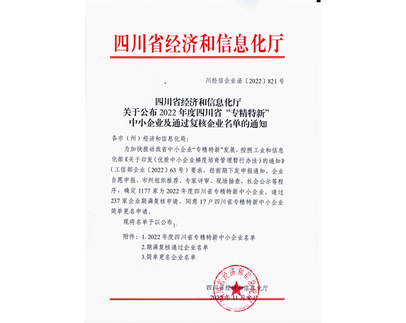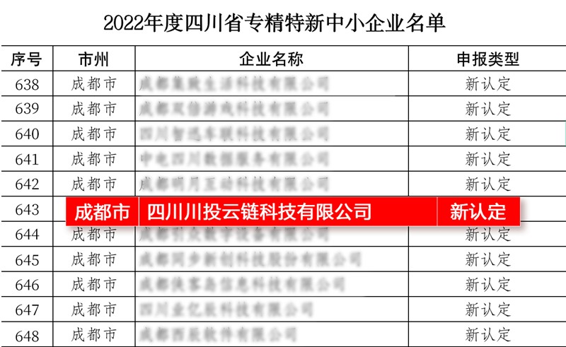 近日,四川省經(jīng)濟(jì)和信息化廳公布了2022年四川省專精特新中小企業(yè)名單,川投信產(chǎn)所屬四川川投云鏈科技有限公司憑借在金融科技領(lǐng)域的突出表現(xiàn)成功獲評四川省“專精特新”中小企業(yè)。