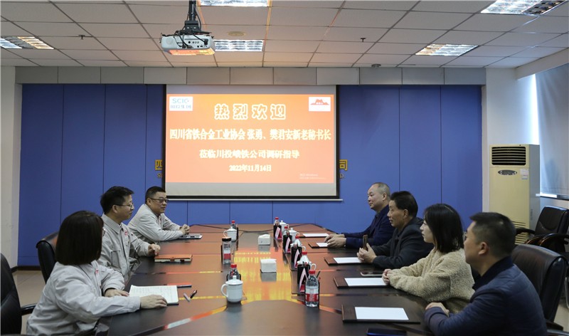 11月14日,四川省鐵合金工業(yè)協(xié)會(huì)現(xiàn)任秘書(shū)長(zhǎng)張勇、前任秘書(shū)長(zhǎng)樊君安一行4人赴川投峨鐵公司調(diào)研指導(dǎo)工作,公司黨委書(shū)記、董事長(zhǎng)唐華應(yīng),黨委副書(shū)記、總經(jīng)理陳新龍,黨委委員、總會(huì)計(jì)師方玲參加會(huì)議。