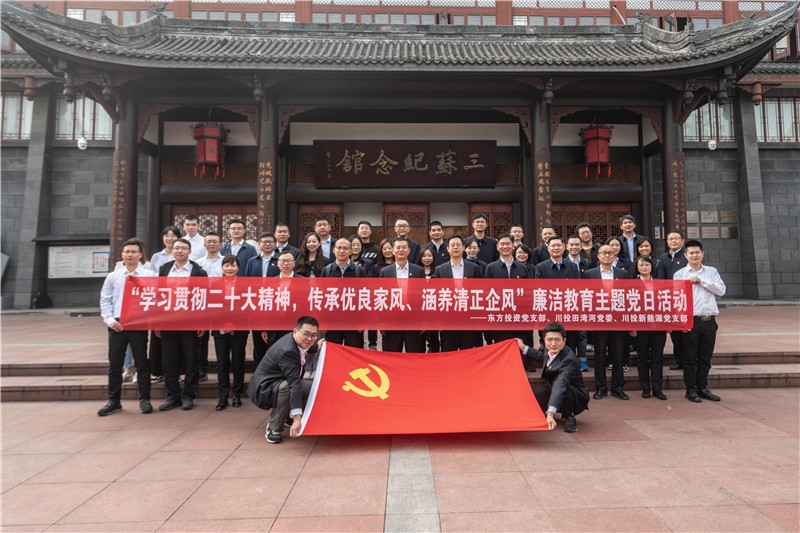 為學(xué)習(xí)貫徹落實黨的二十大精神,傳承先賢精神,感悟初心使命,引導(dǎo)廣大干部職工注重家庭、家教和家風(fēng)建設(shè),進一步營造風(fēng)清氣正、干事創(chuàng)業(yè)的企業(yè)氛圍,11月11日,田灣河公司黨委與川投新能源黨支部、東方投資黨支部在眉山“三蘇祠”共同開展“學(xué)習(xí)貫徹黨的二十大精神、傳承優(yōu)良家風(fēng)、涵養(yǎng)清正企風(fēng)”廉潔教育聯(lián)建活動。